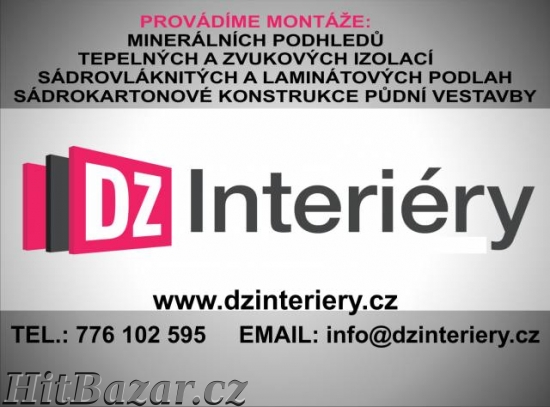 Nabízíme sádrokartonářské práce. Rekonstrukce podkroví, suché a plovoucí podlahy. Dále zajištění ostatních řemesel, dle požadavku. Web: www.dzinteriery.cz