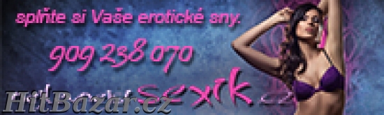 Cenová revoluce! Díky revolučnímu systému porážíme konkurenci, nejenom cenou ale i kvalitou! Jsme hravé, jsme nadržené, jsme perverzní, už brzy ochutnáš naše šťávičky. Pojď si s námi hrát, ukaž, jak nám to umíš udělat!! Nejlevnější sex po telefonu! Nikdo jiný Vám nenabídne takové ceny! Sex revoluce! Sex s kráskami po telefonu! www.nejlevnejsisexik.cz. Volejte číslo 909 238 070. Cena hovoru je 23 Kč/min vč. DPH. Určeno osobám starším 18 let. Provozovatelem služby je M. S., Služby pro dospělé nonstop, P. O. BOX 3, 184 00 Praha 84, technicky zajišťuje AGMO a.s.