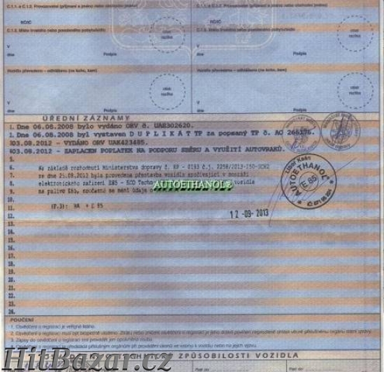 Legální přestavba na E85 schválená dle zákona a požadavků Ministerstva Dopravy.