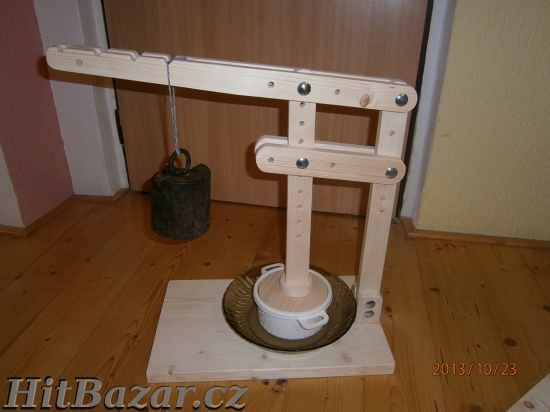 Prodávám lisy na lisování sýrů .Tlak je možné postupně zvyšovat posouváním závaží .S pětikilovým závažím lze vytvořit tlak až 24kg. Lis posílám v rozloženém stavu na dobírku . Cena je 600kč + poštovné dle ceníku české pošty. Objednávky s adresou zasílejte e-mailem farma.tabor@seznam.cz
