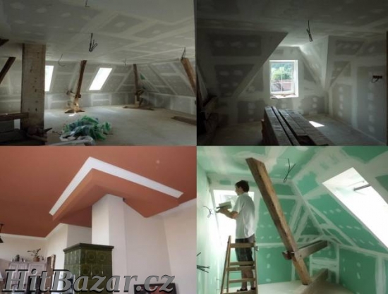Naše firma provádí dodání a montáž suchých staveb (sádrokartonů), minerální podhledy a půdní vestavby na klíč. Dále dodáváme a montujeme plovoucí podlahy, střešní okna, vchodové a interiérové dveře, stavební pouzdra, tepelná čerpadla. Provádíme i drobné stavební práce (zednické úpravy, samonivelační stěrky, suché podlahy, atd.). Dokážeme zajistit elektroinstalaci, vodu, topení, obklady, dlažky, atd. Poradíme, přijedeme, zaměříme a zpracujeme cenovou nabídku bezplatně!