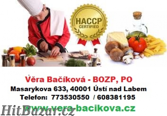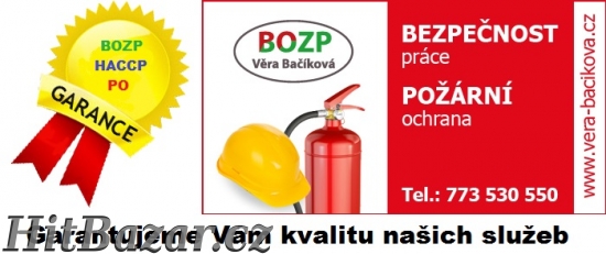 Věra Bačíková - BOZP, PO. Nabízíme Vám komplexní servis v oblasti bezpečnosti a ochrany zdraví při práci - BOZP, dále v oblasti požární ochrany - PO, HACCP - kritické body. Vypracování dokumentace, školení, zastupování. Dále nabízíme doplňkový sortiment. Poskytujeme Vám kvalitní služby v oblasti BOZP, PO a HACCP. Tel: 773530550, 608381195. Člen PKPO, Komora BOZP a PO ČR. Web: www.vera-bacikova.cz