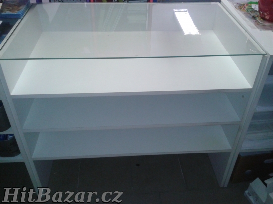 Pult do prodejny, má 3 díly první díl:50x 80 x 60 ( vrchní deska - sklo) druhý díl:50x 80 x 1,5 třetí díl:50x 80 x 1( vrchní deska - sklo) Pult lze sestavit do L, nebo do U, nebo rovně. celková délka pultu je 310 cm