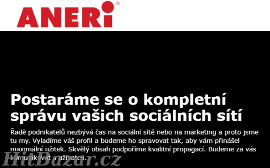 Chcete zřídit účet na jakýchkoliv sociálních sítích a nemáte na jejich založení a správu čas nebo energii? V tom případě se svou potřebou oslovte nás a my se o vaše sociální sítě a s nimi spojený online marketing, postaráme. V současné době se totiž bez daného média nelze obejít. Také se na nás můžete obrátit v případě, kdy budete potřebovat firemní poradenství, to znamená, že s námi firmou můžete konzultovat své stávající podnikání, marketing, způsob založení firmy nebo interní audit a mnohé další nezbytnosti. Také se na nás lze obrátit v případě, kdy u vás pokulhává firemní marketing a vy s tím chcete něco dělat anebo v momentě, kdy potřebujete vytvořit jakýkoliv marketingový plán nebo průzkum trhu. Pokud vás zajímá více, navštivte naše webové stránky https://www.aneri.cz/