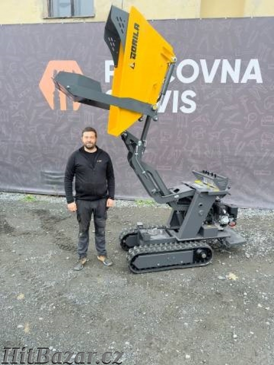 Prodám nový mini dumper GORILA G-800L PRO s výkonným motorem BRIGGS & STRATTON 10 HP. Nosnost až 800 kg, objem korby 260 l. Pásový podvozek zvládne svahy, bláto i sypký terén. Šířka jen 87 cm - projede i úzkými průjezdy. Sklápěcí korba, snadné ovládání, nízká spotřeba, hydraulický chladič. Vhodný pro stavby, zahrady, farmy i terénní úpravy.